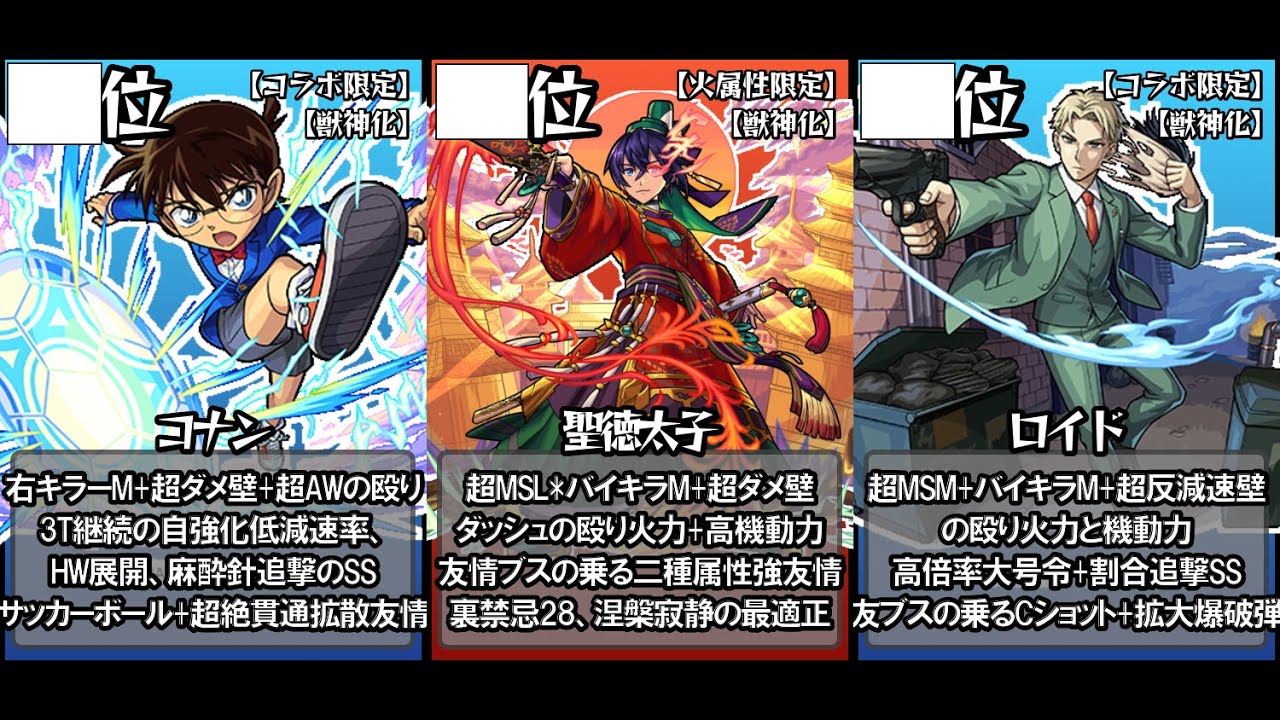 【モンスト】2022年5月版 最強キャラ ランキング TOP50 今月は名探偵コナン、スパイファミリーコラボに新限定も追加で大量にキャラがランクイン!ランキングに返り咲いたキャラも!