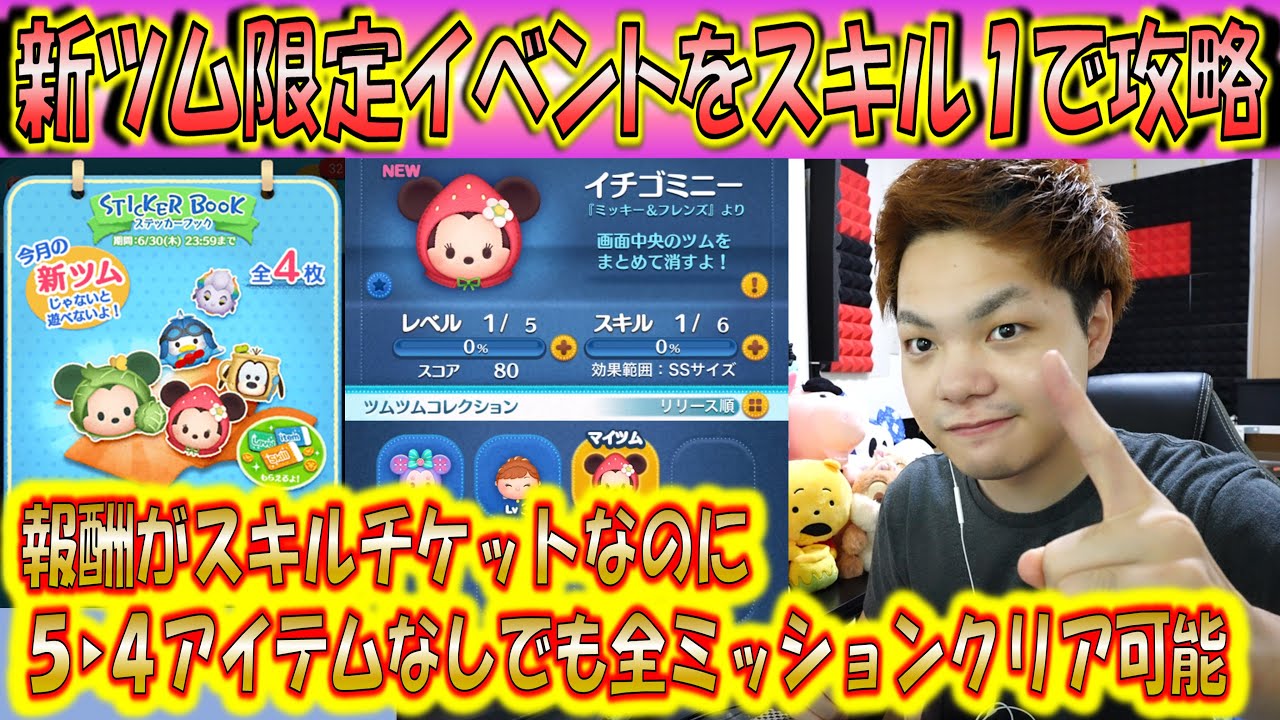新ツム限定イベントをスキル1で全ミッション攻略!5▶4アイテムなしでも全部クリアは可能でスキルチケット獲得!【こうへいさん】【ツムツム】