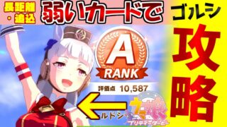初心者・無課金向けに全ての選択肢を解説して実況しています。ゴールドシップは長距離でしかも追込と育成が難しいウマ娘ですが、切り捨て理論で弱いカード(R3枚と配布)を使って簡単に優勝させています(B+8680)。