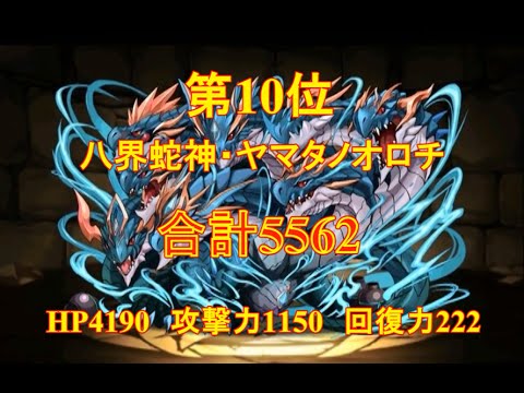 HP、攻撃力、回復力の合計値で強さを測定し、コチラの動画は属性別【水属性】で10位~1位になります。