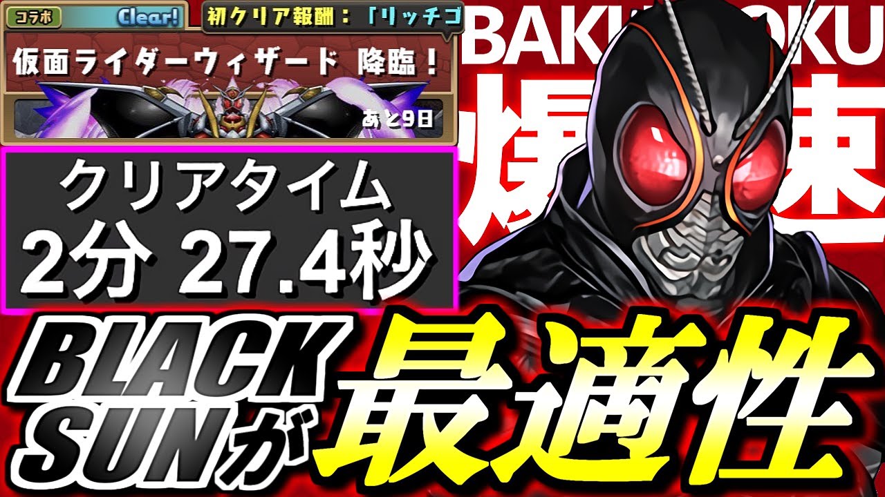 【代用&立ち回り解説付き】最適性リーダーはBLACK SUN!!仮面ライダーウィザード降臨 1周2分半 ずらしのみ快適周回編成をご紹介!!ウィザードの性能解説も併せてお届けします。【パズドラ】